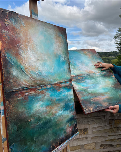 This diptych was created using a range of high quality acrylic paints. Focusing heavily on my impasto technique with thick, beautiful textures creating depth and layers for your eyes to get lost in.